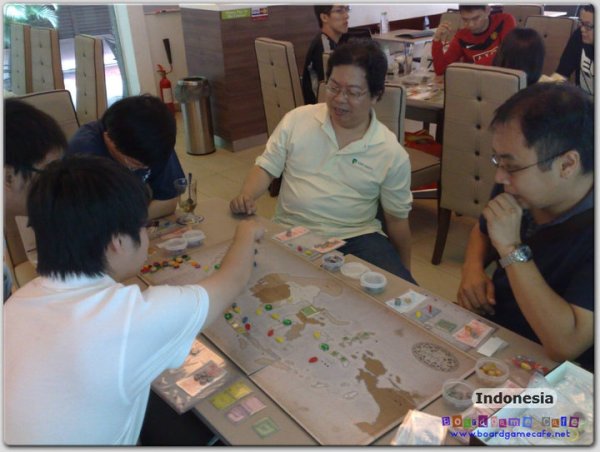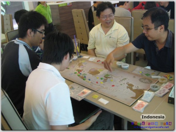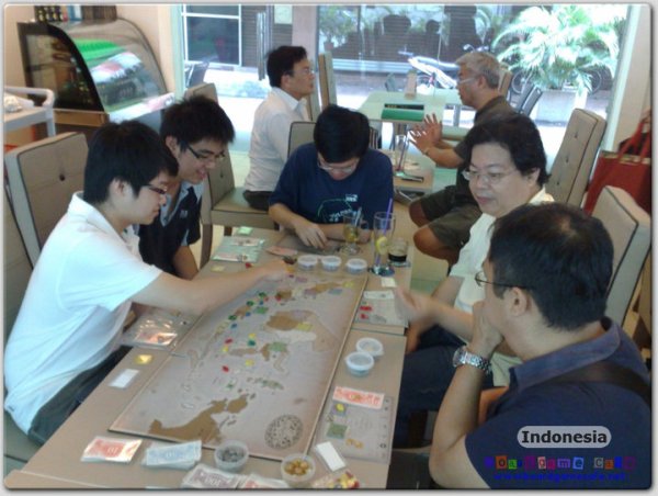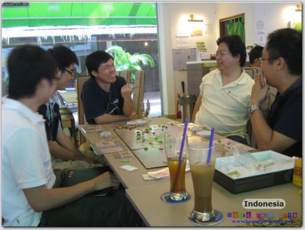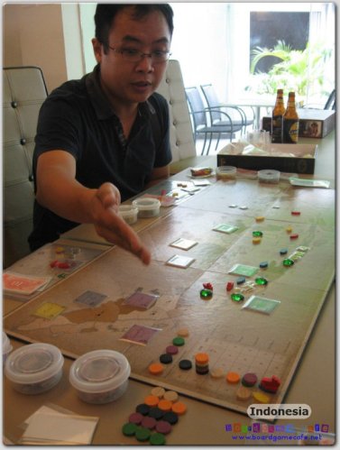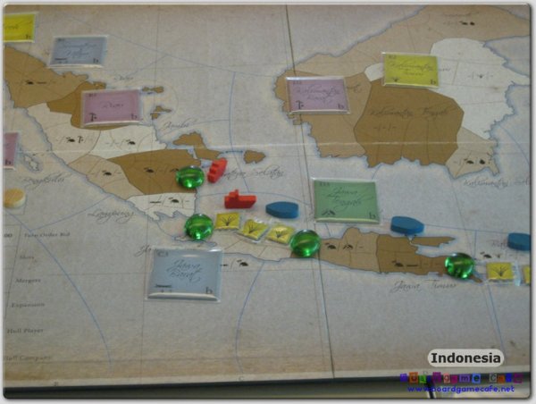 Indonesia is an economic game which takes the players through 3 distinct eras in which rice production were overtaken by rubber and lastly oil. There is also an interesting dynamic between the production companies and the shipping companies which are played quite differently.