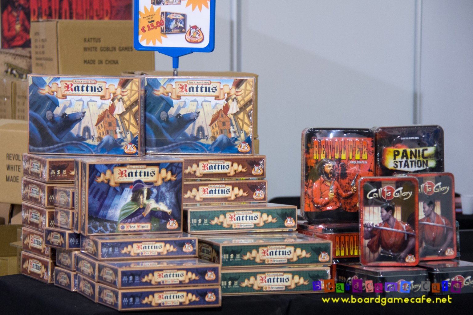 RATTUS and it’s new expansion at the White Goblin Games booth. They have their latest game Nieuw Amsterdam and expansions of Revolver.