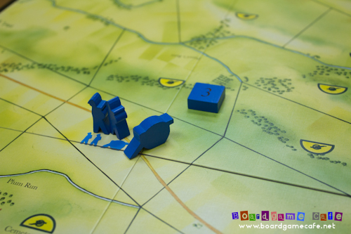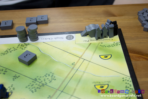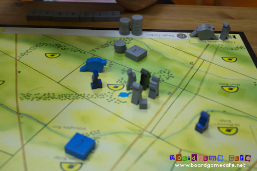The Union (blue) player on the other hand is constantly hobbled by inefficient orders and Wallace introduced black order discs to indicate a “forced pass” where the Union player still has to play the order disc as an action but has to take a pass (and not do anything). The Union player has a limited number of order discs (just 12) and if they ran out of blue order discs, will have to substitute with the black order discs. What this mean is that the Union player still has to drop a fixed number of order discs for each period but if some of these are black ones, the Union player effectively loses a turn to the Confederate player (advantage Confederate!)