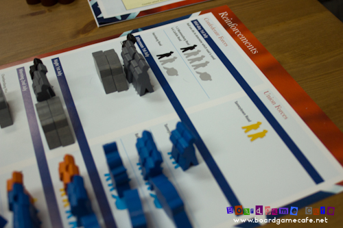 A very simple yet effective and streamlined mechanic designed into the game to set the onus on the Confederate player to rush for an early victory before the Union reinforcement arrives (the double orders in particular are bad for the Unions).