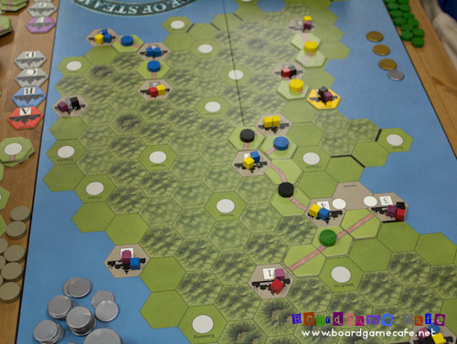 I regard Age of Steam as the successful conclusion to Wallace’s experiment with train games thru the Railways series (New England Railways being one of those) and Volldampf. The number of expansion maps for AOS – both official and fan-designed – attest to it’s everlasting popularity and also expandability.