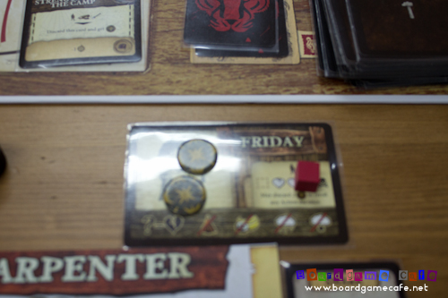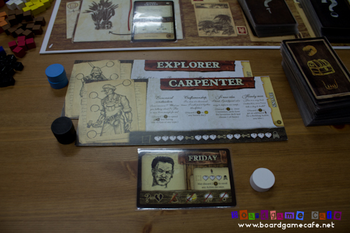 One question that comes to mind (ala Pandemic) is would the game be easier or harder with different player count. I suppose that question was answered when they included a standalone character Friday with the 2-player mode. There are certain restrictions to what Friday can and cannot do, but overall he’s more of an asset to the team than a liability eg he does not need to feed (at night) hence does not increase your food liability.
