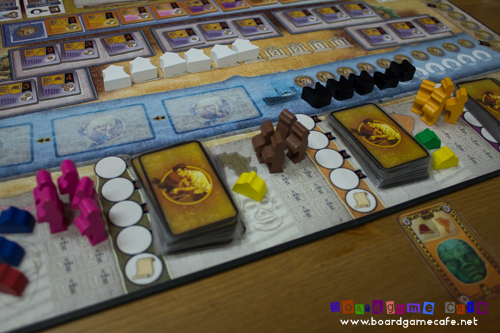Heavy coop ARCHIPELAGO was in play along other lighter games like BLACK SPY, ALHAMBRA and the exciting & tense JUNGLE TREASURE from Haba. The main course of the evening would be White Goblin’s ARTIFACT and Rass Game WILDCATTERS.