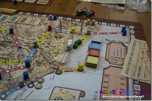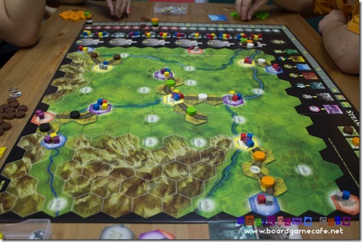 The routes expanded in mid-game. This game doesn’t seem as packed as AoS Rust Belt map which is absolutely brutal for 5- or 6-player game.