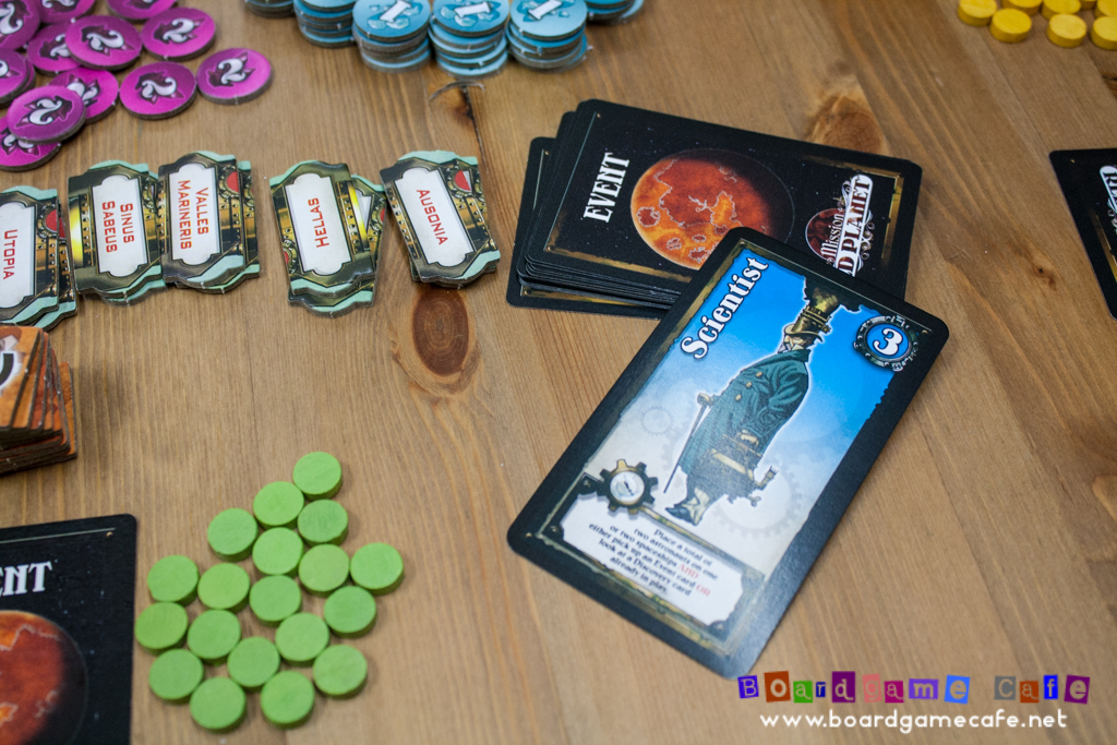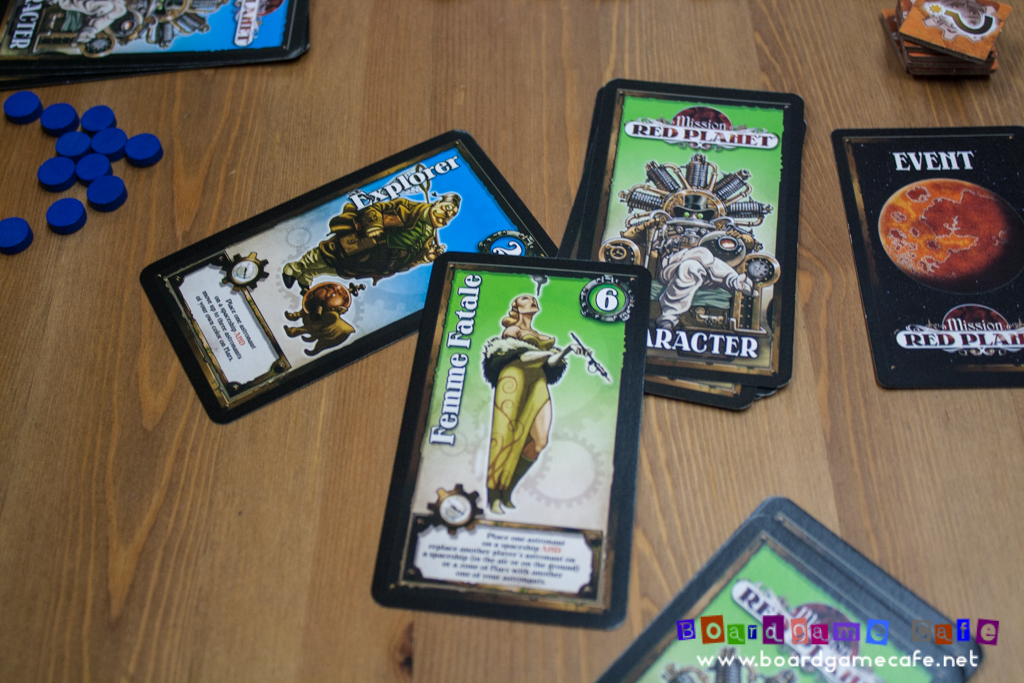 For eg if the Scientist character is selected by a player, he gets to send two astronauts to two separate spaceships and also draw an Event card (which can either be a Bonus or Discovery card).