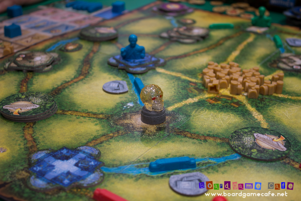 The board did not look as “pretty” as a Days of Wonder game (then again we were comparing this with very high benchmarks like TTR, Memoir 44, Shadows over Camelot etc) but the relic pieces were very well made.