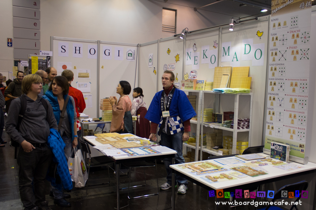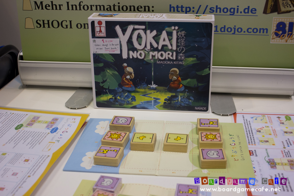 The next booth is an interesting one – it’s hosted by the Japanese Shogi Association. Firstly to promote Shogi and secondly to showcase Madoka Kitao’s reimplementation of Shogi in a simpler version called Yokai no Mori (which is published by Ferti),
