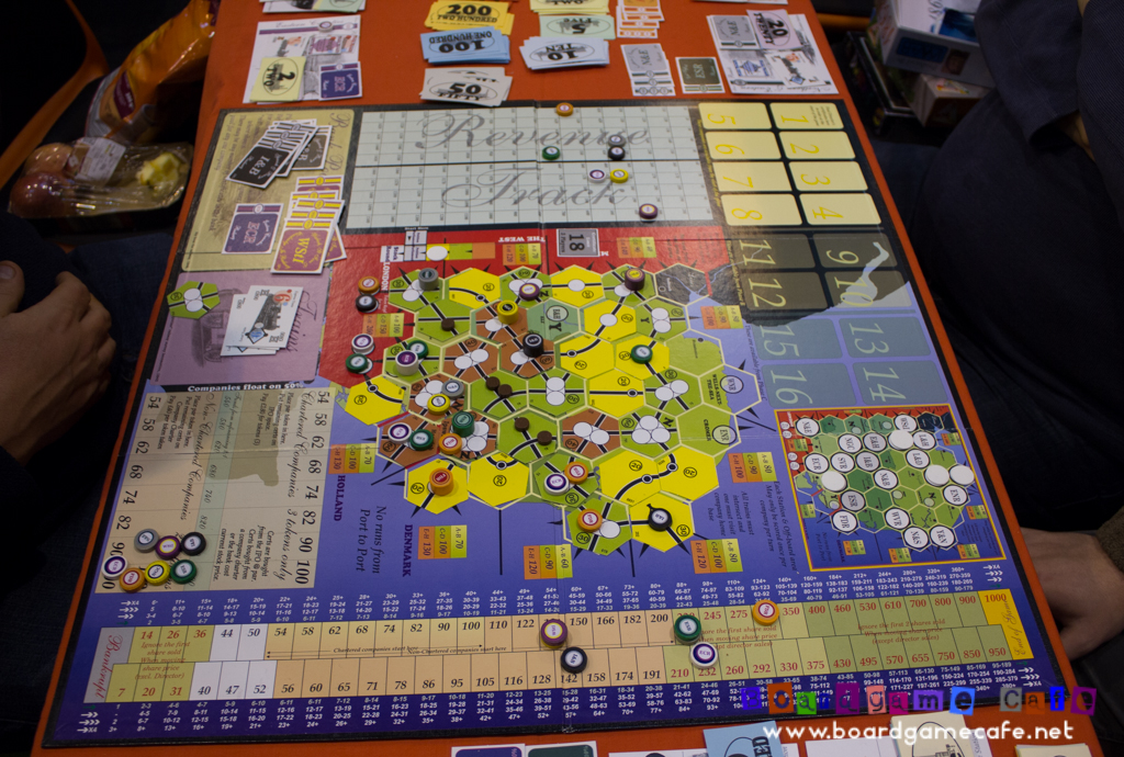 The game map surprisingly looks smaller than I’d thought for a 8-player 18xx. I did ask Mike Hutton – he was playing in a current game session – but it was noisy and I couldn’t hear exactly what he told me.