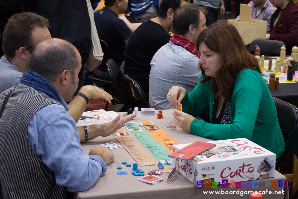 We went back to Matagot / Asmodee booth to take another look at CORTO. On our first round here yesterday, we didn’t see any open set of CORTO in play (for us to take pics).