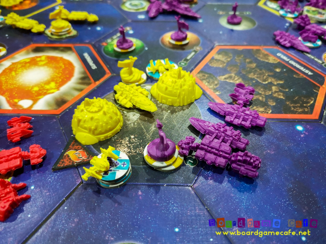 YSSARIL (purple) was patience and busy with stocking up Action cards, playing politics and also tech-ing up his forces. Not much of a threat now. But tunggu-la.