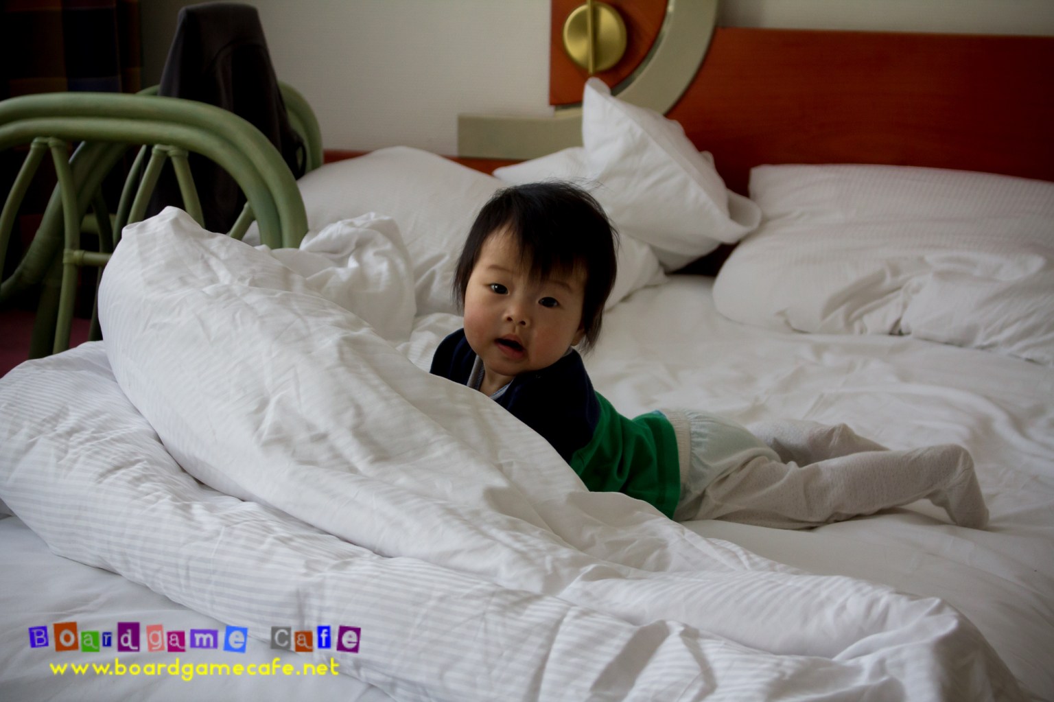 In the room, the Adults made a makeshift “wall” around the edge of the bed, using (of all things to make walls with) the blanket!