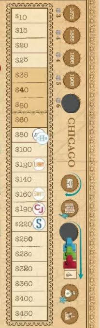 City of the Big Shoulders tells the story of Chicago, from the late 19th century to the early 20th century. This was a golden age for the city. You are capitalists who invest in and operate companies. You manipulate share prices to increase your wealth. To win, you must become the richest individual. The value of the shares you hold will contribute the most to your net worth. It is not about the success of the companies you have invested in. They are but tools to create wealth for you. Your cash in hand also contributes to your wealth. If you fulfil some of the public objectives, you will score some spare cash too.