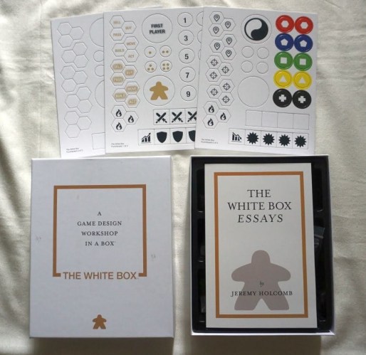 The White Box is not a game, but it can potentially be turned into many games. It is a box of components that can be used by game designers to work on their ideas. It also contains a book – a collection of articles about game design and game publishing.