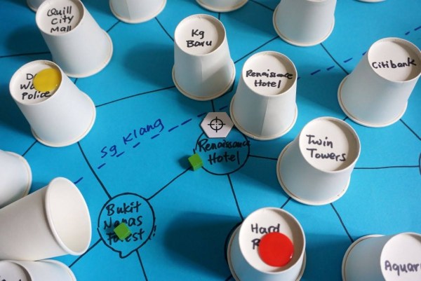 When a human team moves, you pick up one of the cubes, then move it to a location which also has a cube of the same colour, or to a location adjacent to one of the cubes. A human team may not be broken up. The cubes must stay together or adjacent to one another. Let’s take the white team as an example. Its starting location was Low Yat, and one team member has moved to Jalan Alor. If the target destination is Maybank, your next move will be to move one of the cubes at Low Yat to KL Tower. In the subsequent turn, you move the last remaining cube from Low Yat to Maybank. Throughout this process, the team has never been broken up.