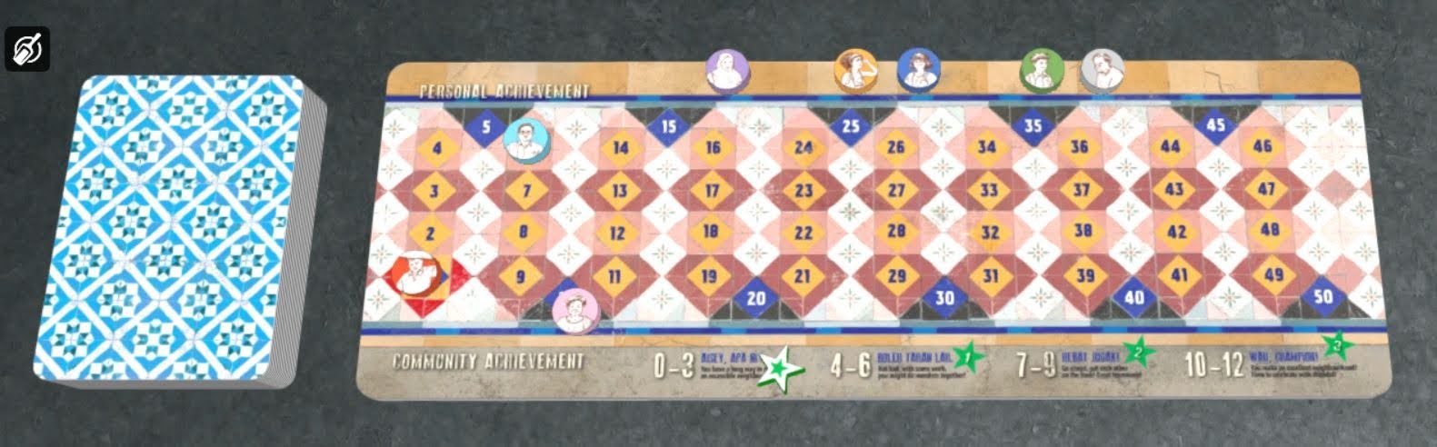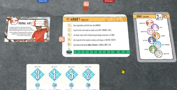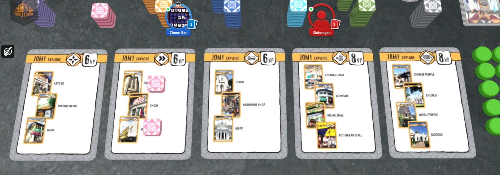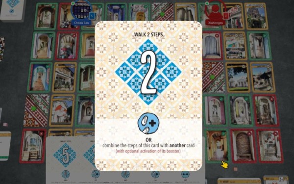 Prior to playing the game I had expected a very light game. Kaki Lima turned out to be a little meatier than I thought. I’d categorise it as a medium-weight game. It’s not that complex. Every turn you are just playing cards to move your pawn. However there are quite a few different aspects you need to keep in mind in order to score points efficiently. You need to remember the missions on your mission card and the locations on the objective cards. You need to watch out for meet-ups. You need to consider whether to clear many blocked paths for the points. The location cards all have powers. There are only a few types of such powers, but it’s still something you should consider when you plan your move. For an innocent tourist who has not played modern boardgames, these can take some effort to digest. There are many unique location cards, and it takes some effort to map out this randomly generated Penang before you start your game.