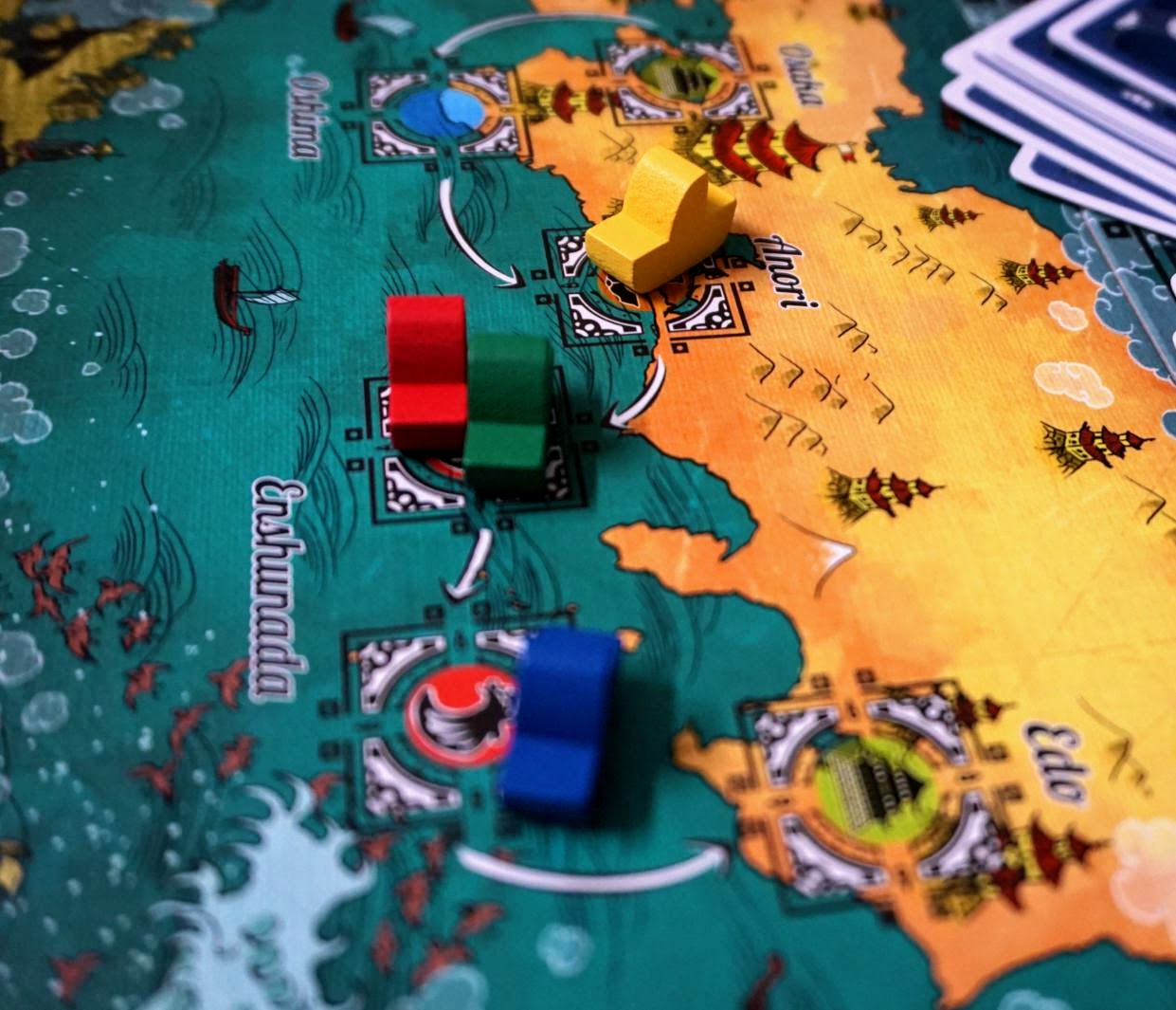 I bought Priests of Ra because I was curious to see how it worked. Ra is a game full of happy memories for me. Priests of Ra is not new. In fact it is probably out of print in most places. I bought it mostly because of nostalgia for its predecessor. Strictly speaking it was my wife Michelle who bought JOME. For now I count all game purchases in the household as mine. Michelle bought JOME to support a local game designer.