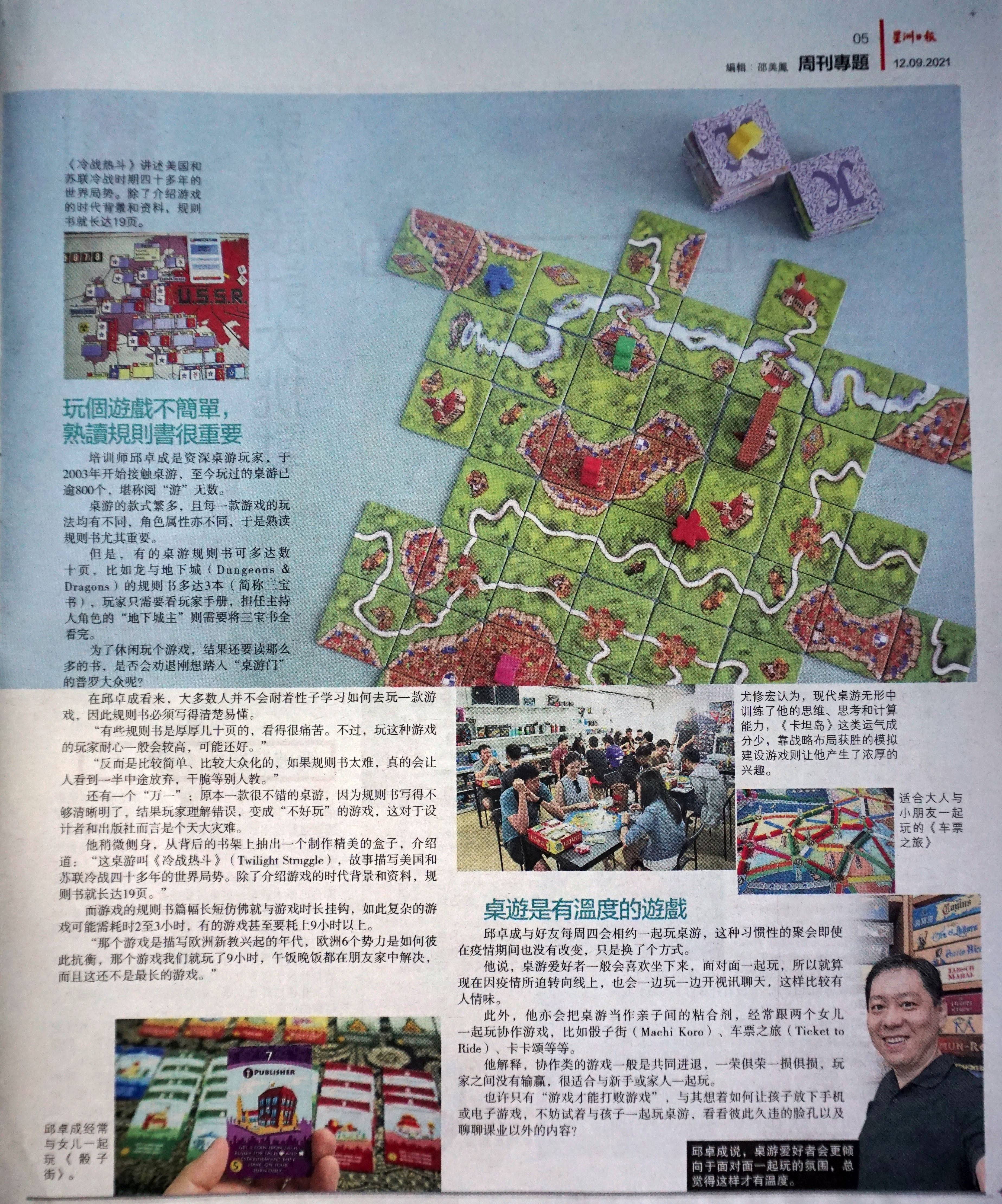 I was interviewed by Sinchew Daily again. The last time was 2017 and it was a different reporter then. This time round a few others in local boardgame circles were also interviewed. The reporter wrote a series of articles and they took up quite a lot of space. This was good exposure for boardgames.